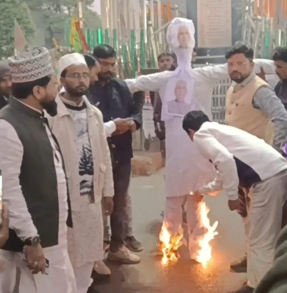 बिहार के मुख्यमंत्री नीतीश कुमार की ओर से नियुक्ति पत्र वितरण समारोह के दौरान एक मुस्लिम महिला चिकित्सक नुसरत प्रवीण का हिजाब खींचे जाने के कथित मामले के खिलाफ शनिवार को सुभाष चौक में विरोध प्रदर्शन हुआ। शाम करीब पांच बजे ख़िदमत-ए-इंसानियत फेडरेशन, रामगढ़ के बैनर तले विरोध प्रदर्शन करते हुए बिहार मुख्यमंत्री नीतीश कुमार का पुतला दहन किया गया। प्रदर्शन का नेतृत्व ख़िदमत-ए-इंसानियत फेडरेशन रामगढ़ के सदर रियाज़ अंसारी, कोषाध्यक्ष एवं दुर्गी पंचायत के मुखिया मोक़ीम आलम ने संयुक्त रुप से किया। इस दौरान पुतला दहन में शामिल लोगों ने नीतीश कुमार मुर्दाबाद, माफी मांगों आदि जमकर नारे लगाए। रियाज़ अंसारी ने कहा कि मुख्यमंत्री जैसे संवैधानिक पद पर बैठे व्यक्ति से ऐसी असंवेदनशील हरकत बेहद निंदनीय है। उन्होंने कहा कि इस तरह की घटनाओं से देश की छवि अंतरराष्ट्रीय स्तर पर धूमिल होती है। मुख्यमंत्री को अपनी मानसिकता पर पुनर्विचार करना चाहिए और इस मामले में सार्वजनिक रूप से माफी मांगनी चाहिए। वहीं सचिव मुनव्वर सैफी ने कहा कि भारत का संविधान हर नागरिक को अपनी आस्था और संस्कृति के अनुसार वस्त्र धारण करने का अधिकार देता है। किसी महिला के पहनावे पर हस्तक्षेप करना न केवल असंवैधानिक है, बल्कि महिला सम्मान के भी खिलाफ है। उन्होंने मांग की कि मुख्यमंत्री नीतीश कुमार इस मामले में तत्काल माफी मांगें और भविष्य में ऐसी घटनाओं की पुनरावृत्ति न हो, इसके लिए स्पष्ट दिशा-निर्देश जारी करें। प्रदर्शन में पंचायत समिति फरीद अंसारी, पीरी मुखिया प्रतिनिधि शीतल बेदिया,अंजुमन सेक्रेटरी मो.हसीब, समाजसेवी शफाकत अंसारी, अजय साव, जितेंद्र मुंडा,मोहसिन खान, हसरत रज़वी, क़ारी अताउल मुस्तफ़ा, हाफ़िज़ वसीम, वली हसन, रफीक अंसारी, गुलाम रजा, मोहम्मद वकील, मासूम रजा, ताजुद्दीन अंसारी, रफीउल्लाह अंसारी, सगीर अहमद, अशहर रजा, मुबारक अली आदि शामिल थे।