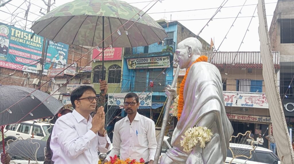 गांधी चौक में श्रद्धांजलि देने पहुंची जिला प्रशासन की टीम
