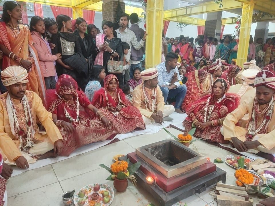 रामगढ़ शहर में एक साथ 51 जोड़ों का सामूहिक विवाह हुआ। इसका ऐतिहासिक आयोजन भारत विकास परिषद ने रविवार को श्री गुरु नानक पब्लिक स्कूल स्थित ऑडिटोरियम किया। इस अवसर पर 51 जोड़ियों ने वैदिक मंत्रोच्चारण के बीच पवित्र अग्नि के फेरे लेकर जीवन-सफर की शुरुआत की। उद्घाटन हजारीबाग सांसद मनीष जायसवाल ने की। मुख्य अतिथि के रूप में उद्योगपति सह समाजसेवी हरि कृष्ण बुधिया, विशिष्ट अतिथि विधायक रौशनलाल चौधरी, परिषद के राष्ट्रीय महासचिव राज दुर्गा दत्त शर्मा मंचासीन रहे। सभी अतिथियों ने नवविवाहित जोड़ियों को आशीर्वाद दिया। हरि कृष्ण बुधिया ने कहा भारत विकास परिषद ने समाज में सामूहिक विवाह की जो परंपरा शुरू की है, वह अद्भुत और अनुकरणीय है। ईश्वर करें कि ये 51 जोड़ियां सदैव सुखी रहें। सांसद मनीष जायसवाल ने आयोजन को मानव सेवा की मिसाल बताते हुए कहा कि इस प्रकार के कार्यक्रम समाज में समानता, सरलता और भाईचारे का संदेश देते हैं। मैं सदैव ऐसे आयोजनों में सहयोग करता रहूंगा। उद्घाटन से पूर्व 51 जोड़ियों की बारात गाजे-बाजे और आकर्षक सजे वाहनों के काफिले के साथ नगर के विभिन्न मार्गों से गुज़री। रास्ते भर लोगों ने बरातियों का उत्साह पूर्वक स्वागत किया। बारात के लौटने के बाद ऑडिटोरियम में पारंपरिक ढंग से सभी जोड़ियों का स्वागत हुआ। ऑडिटोरियम परिसर में सभी 51 जोड़ियों के लिए अलग-अलग सजे विवाह मंडप बनाए गए थे। जहां आचार्य पंडित गोविंद बल्लभ शर्मा सहित अन्य 15 विद्वान पुरोहितों ने वैदिक रीति से विवाह संस्कार पूरे करवाए। वातावरण मंत्रोच्चार, संगीत और शुभकामनाओं से गूंज उठा। विवाह के उपरांत भारत विकास परिषद की ओर से सभी 51 कन्याओं को गृहस्थ जीवन के लिए आवश्यक सामग्री कुर्सी, गदा, पलंग, बर्तन-बसन, साड़ियां आदि प्रदान की गईं। मौके पर मुख्य रुप से अध्यक्ष सरदार अनमोल सिंह, सचिव मनमोहन सिंह लांबा, उपाध्यक्ष आनंद सर्राफ, कोषाध्यक्ष रामप्रवेश गुप्ता, संस्कार प्रमुख प्रदीप कुमार शर्मा, सेवा प्रमुख उमेश राजगढ़िया आदि का मौजूद थे।